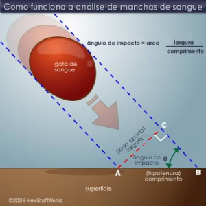Alguns analistas especialistas em serologia usam cálculos trigonométricos para descobrir a área de convergência. As medidas da mancha de sangue tornam-se os lados de um triângulo rectângulo: o seu comprimento é a hipotenusa e a sua largura fica do lado oposto ao ângulo que o analista tenta descobrir.